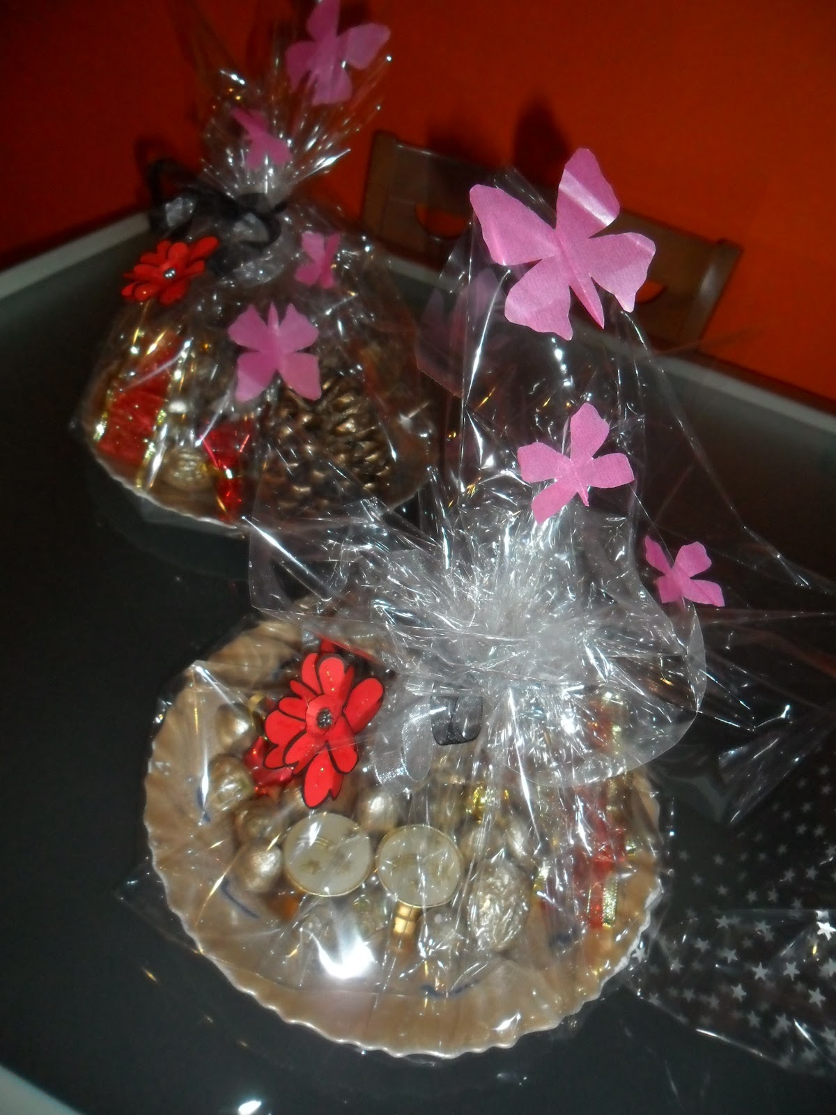 Ahora he añadido unas lazadas que he realizado yo misma, las he tenido que coser para que no se deshaga la lazada y pegar al plato.